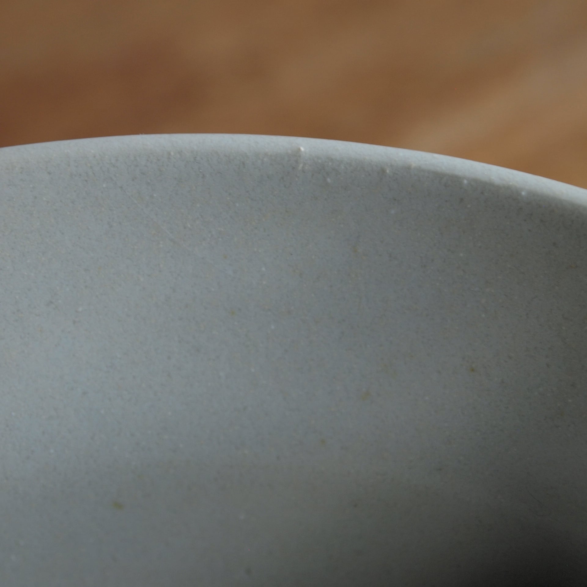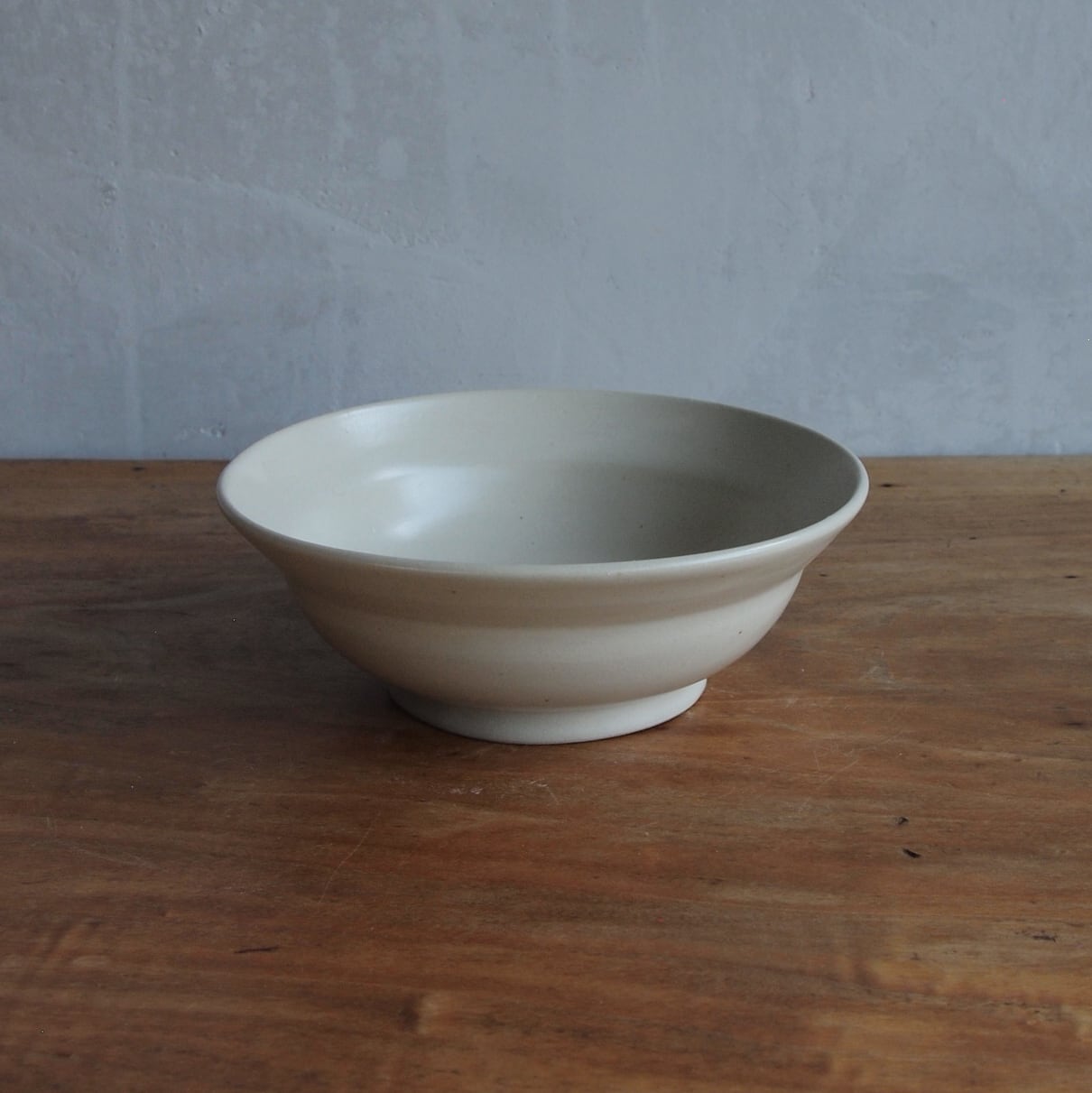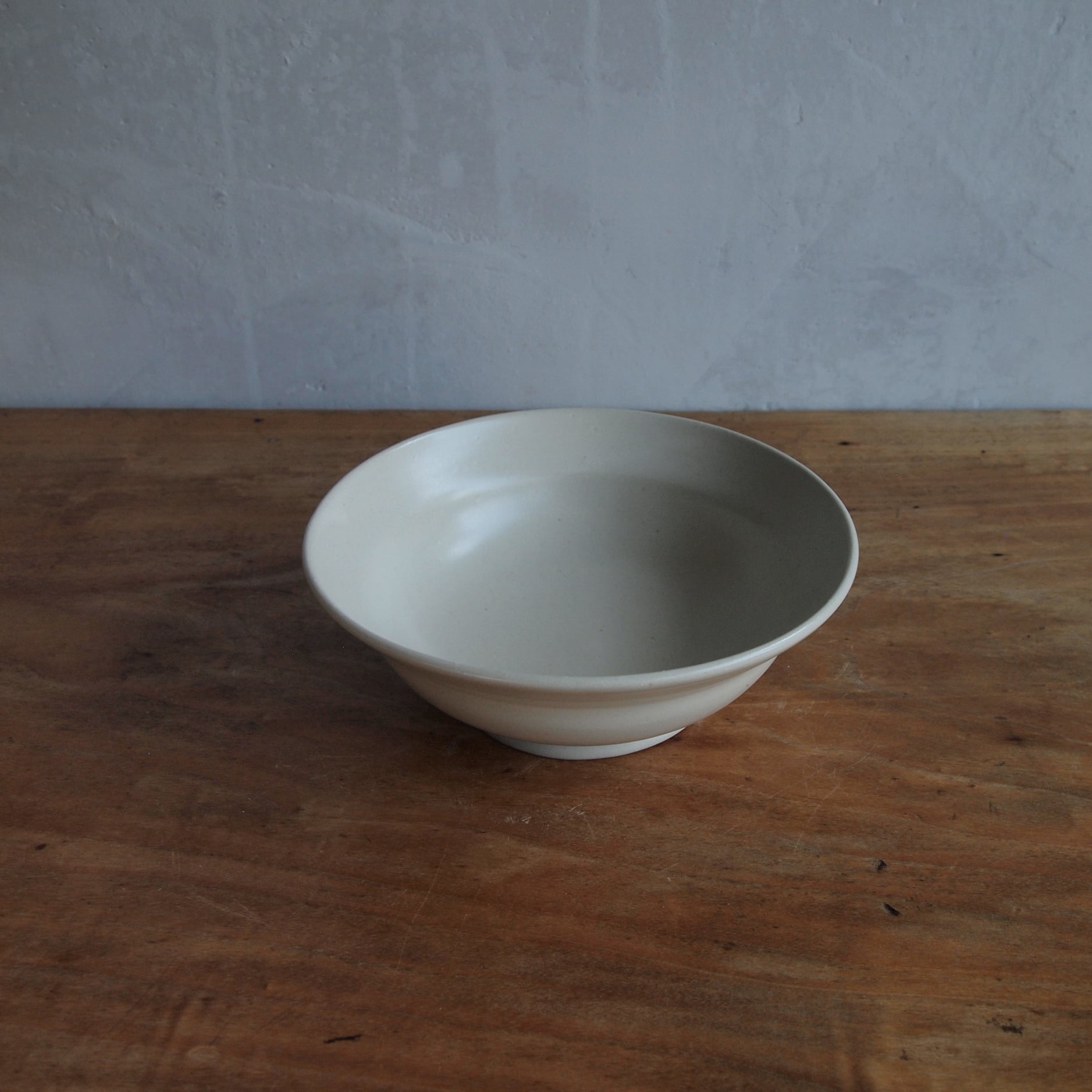 マットな白のリムのある少し深めのスープ皿です。煮物を持ったり小丼の代わりにしても。