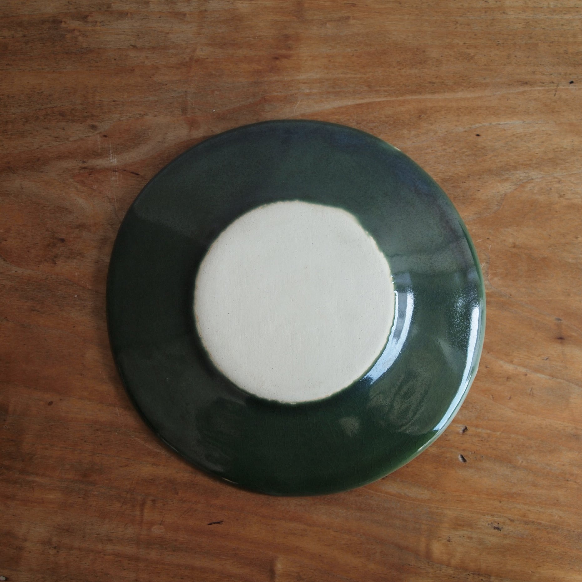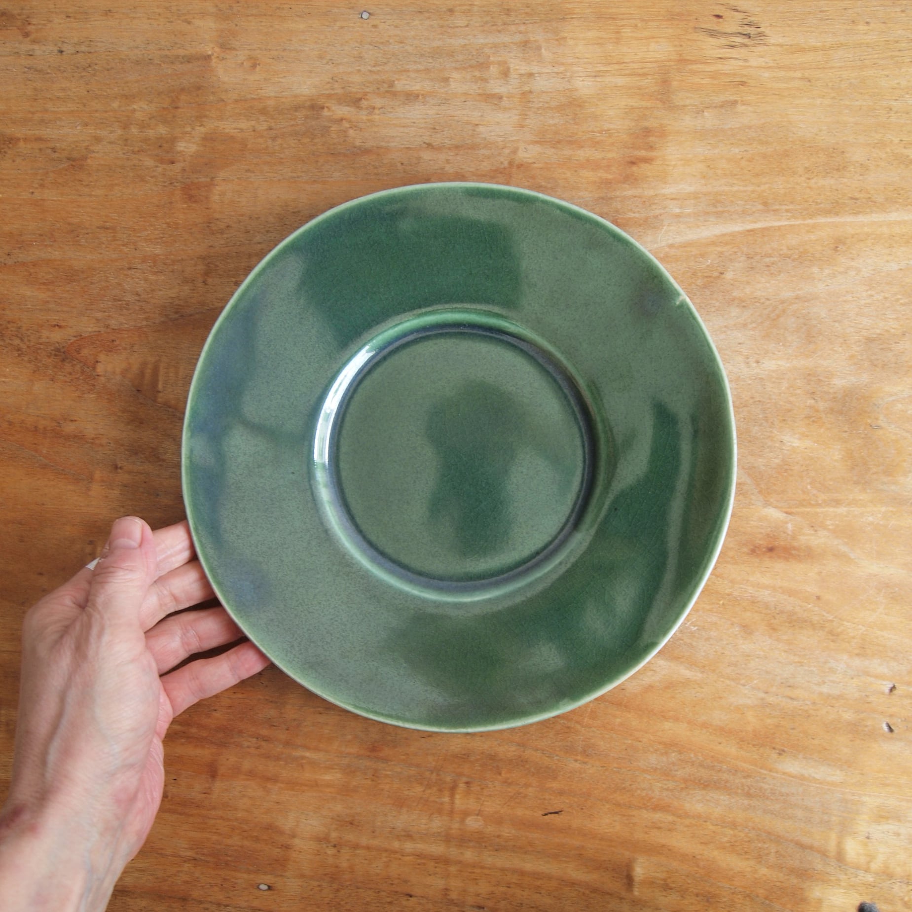 リムの広い丸皿。リムをしっかり見せてオシャレに使っても、たっぷり盛って普段使いにも。