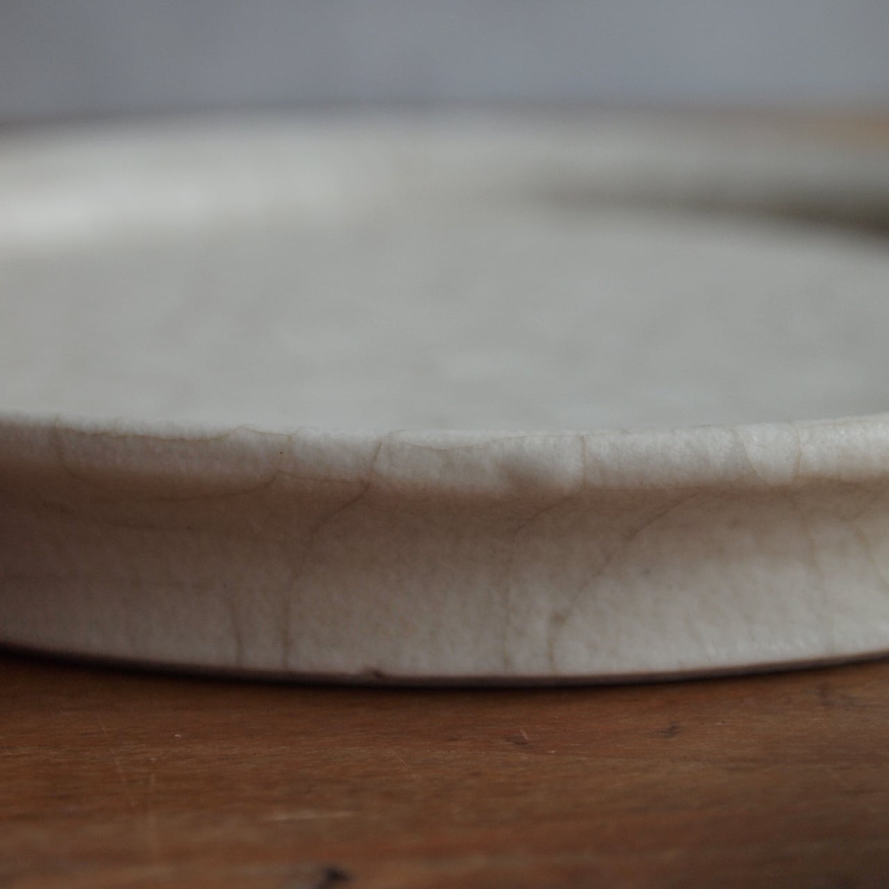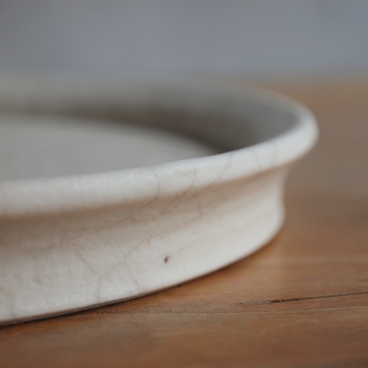 「水のような 空気のような 静かな器」がコンセプトの陶磁器作家・塚崎愛さんのリム皿。