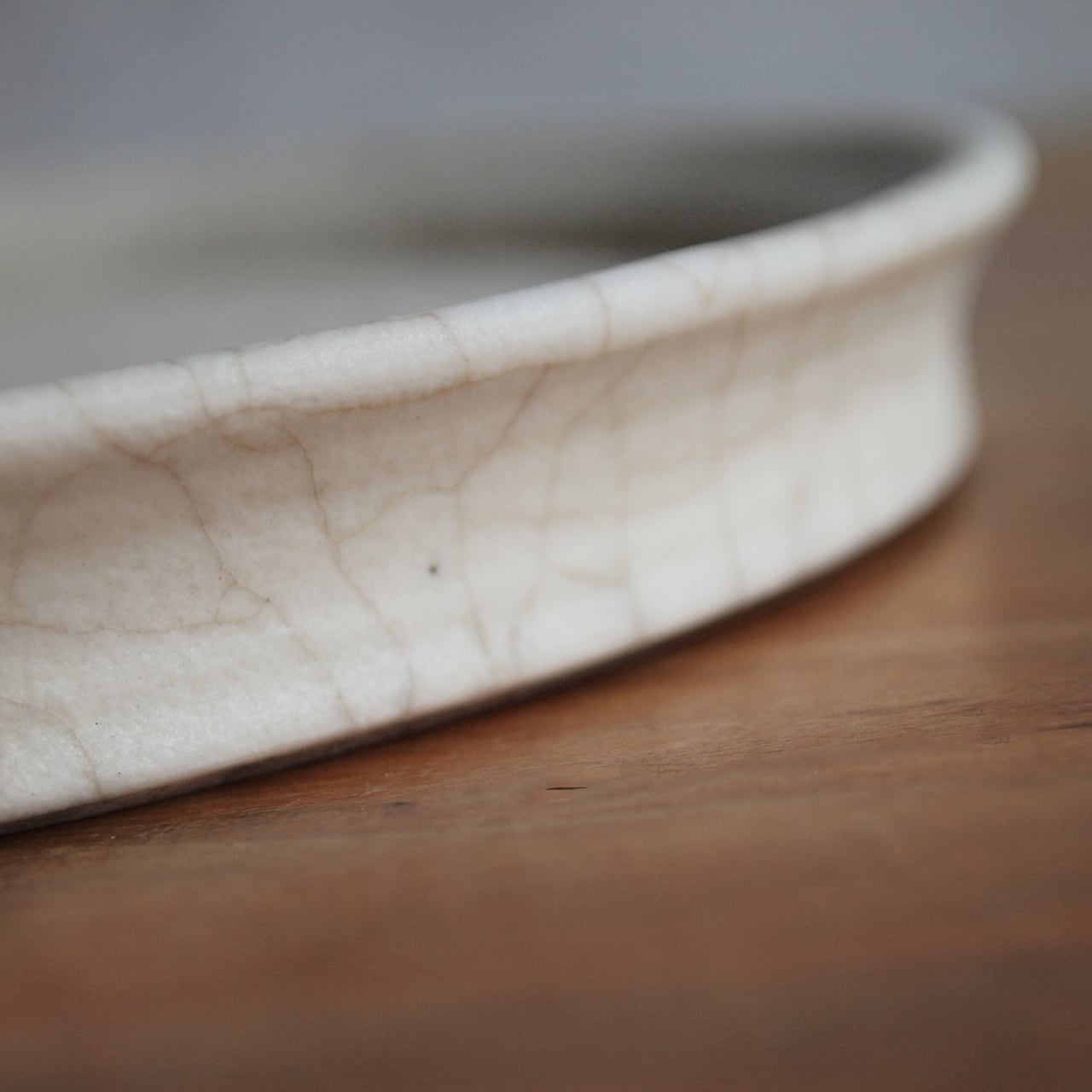 「水のような 空気のような 静かな器」がコンセプトの陶磁器作家・塚崎愛さんのリム皿。