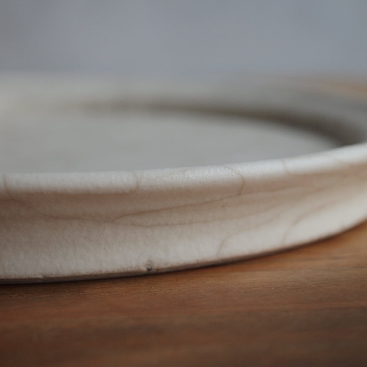 「水のような 空気のような 静かな器」がコンセプトの陶磁器作家・塚崎愛さんのリム皿。