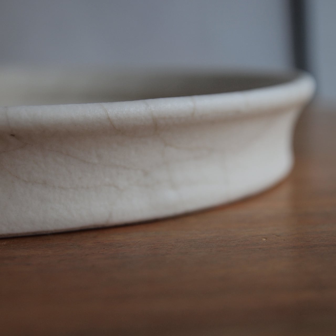 「水のような 空気のような 静かな器」がコンセプトの陶磁器作家・塚崎愛さんのリム皿。