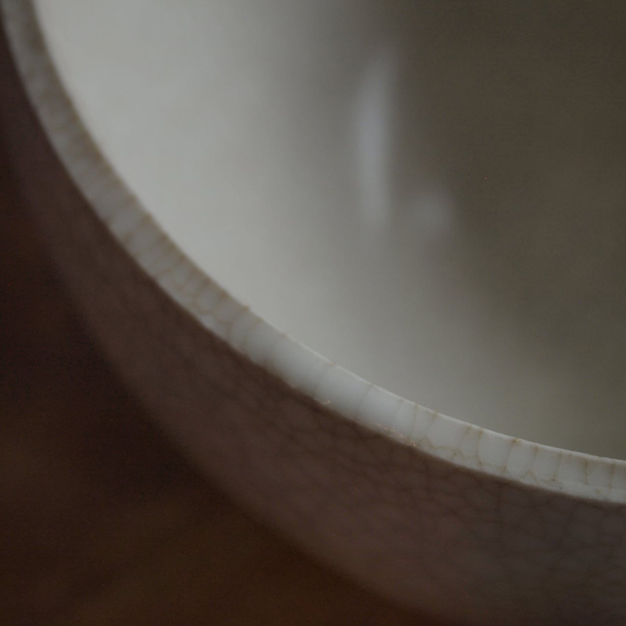 □釉薬がついてうない部分(ざらっとしている部分)の茶色は貫入を染めた液の色です。元は白い土なので使用していくと色合いが変化いたしますが風合いとしてお楽しみください。