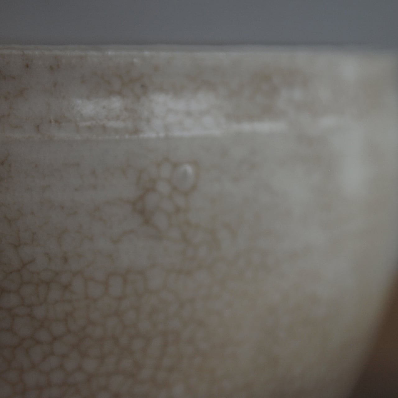 □釉薬がついてうない部分(ざらっとしている部分)の茶色は貫入を染めた液の色です。元は白い土なので使用していくと色合いが変化いたしますが風合いとしてお楽しみください。
