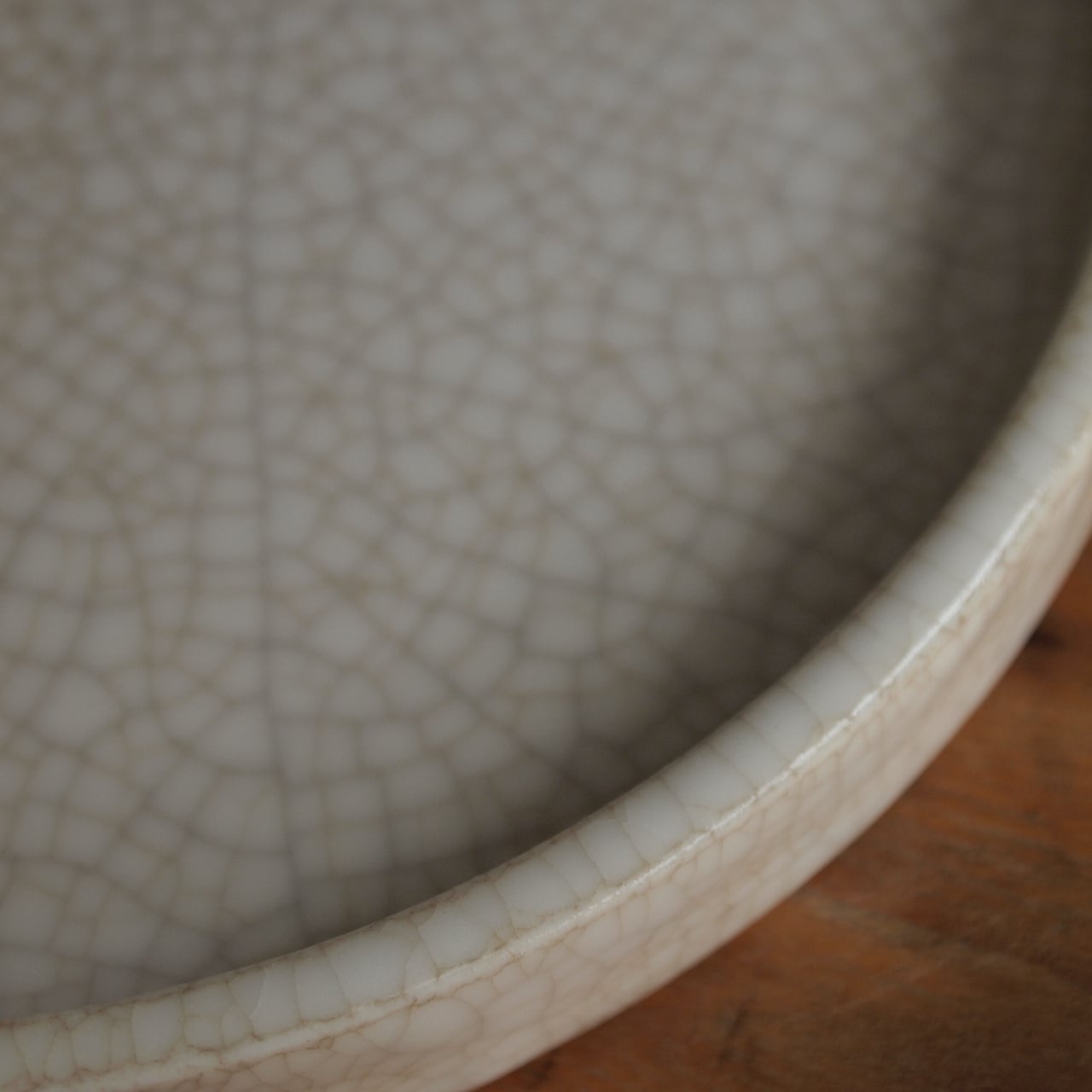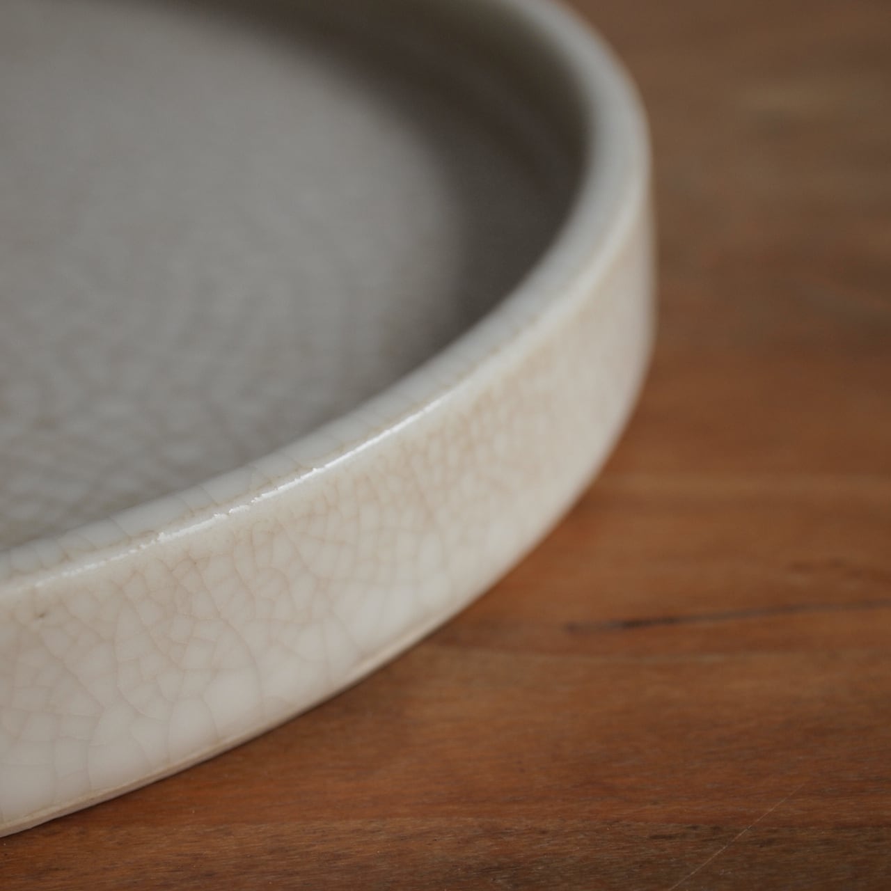 「水のような 空気のような 静かな器」がコンセプトの陶磁器作家・塚崎愛さんの陶胎盆皿。