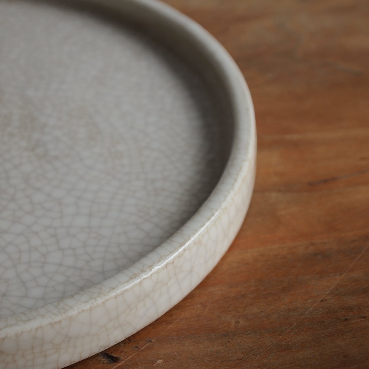 「水のような 空気のような 静かな器」がコンセプトの陶磁器作家・塚崎愛さんの陶胎盆皿。