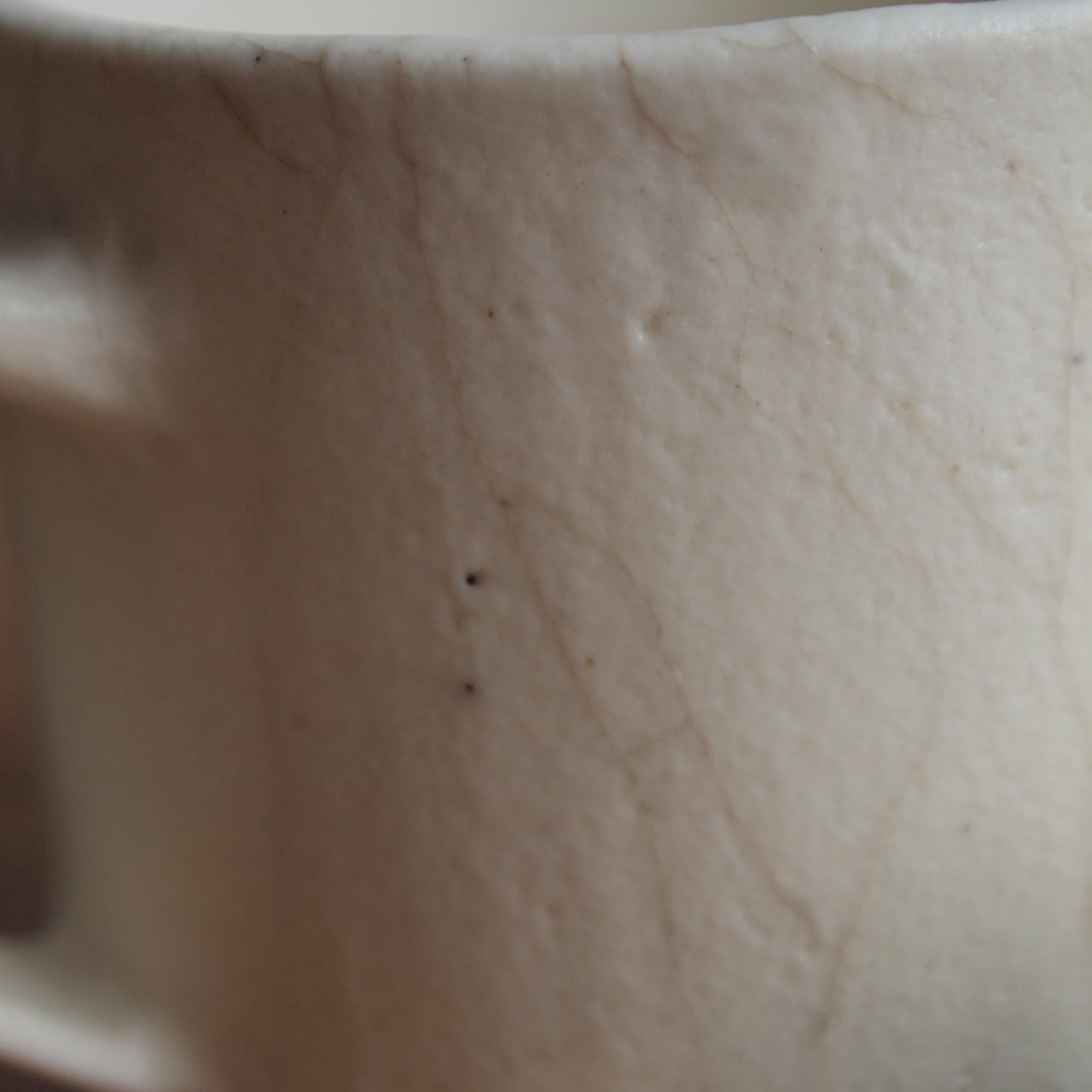 □釉薬がついてうない部分(ざらっとしている部分)の茶色は貫入を染めた液の色です。元は白い土なので使用していくと色合いが変化いたしますが風合いとしてお楽しみください。