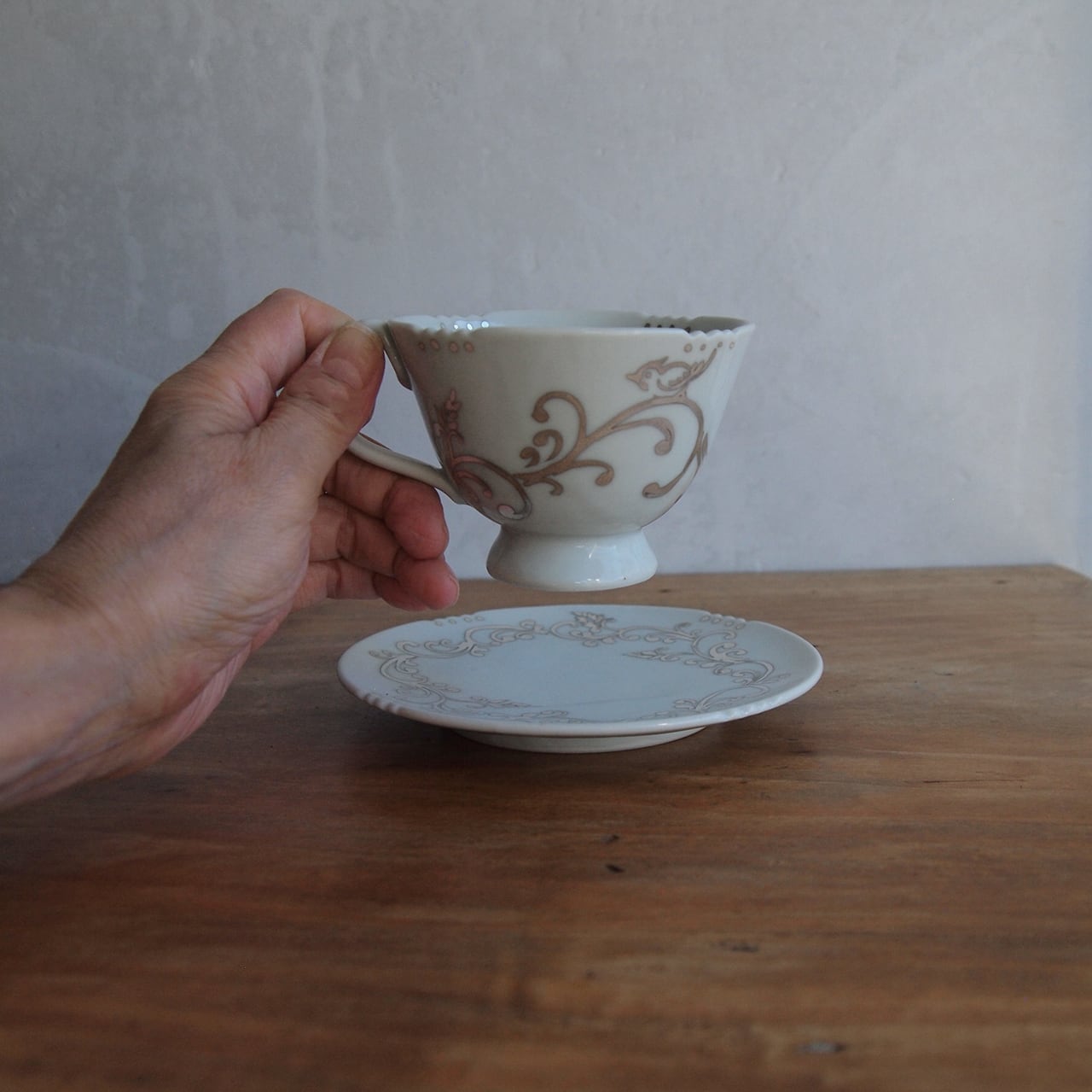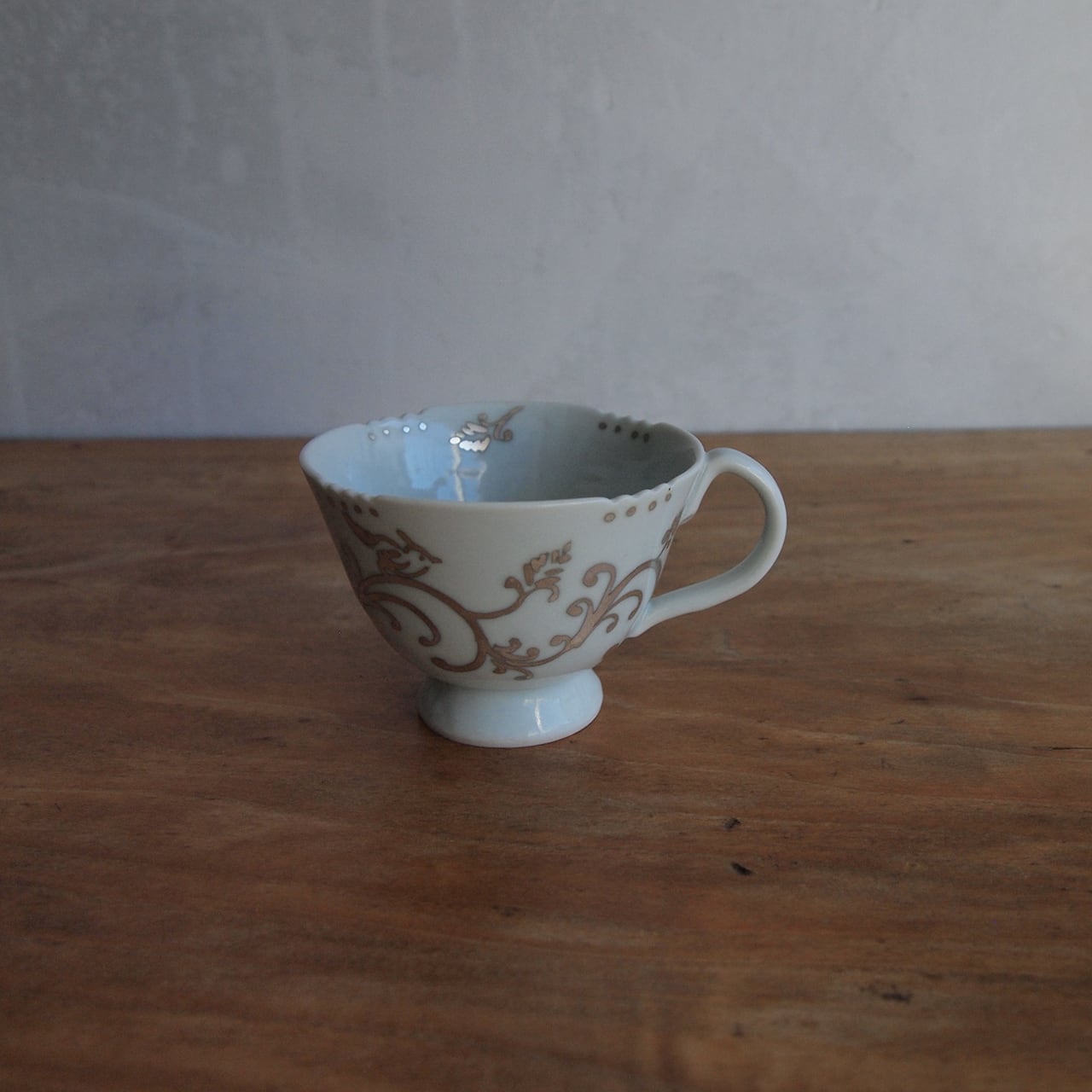 【online個展】稲村真耶|銀彩鳥唐草カップ&ソーサー[A]