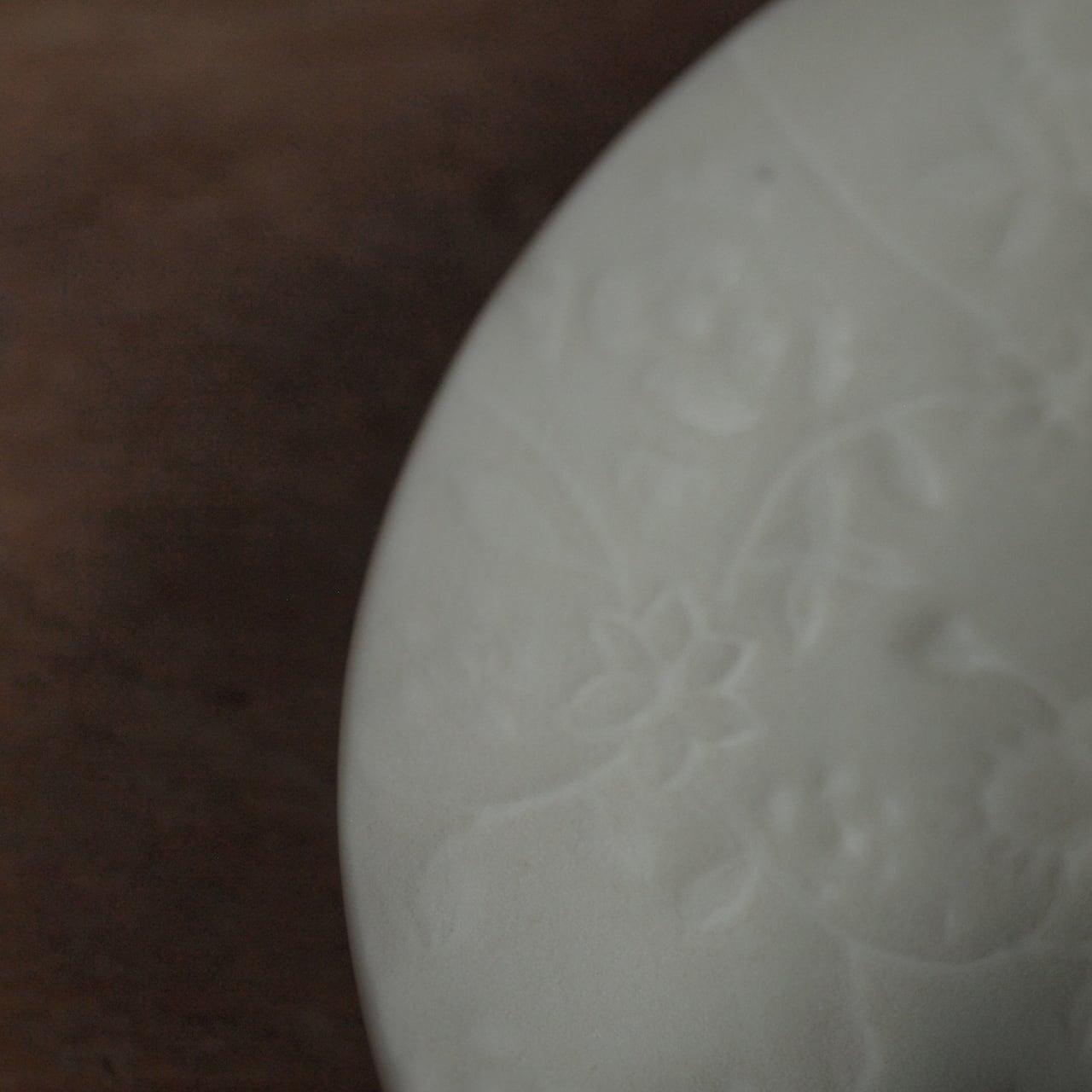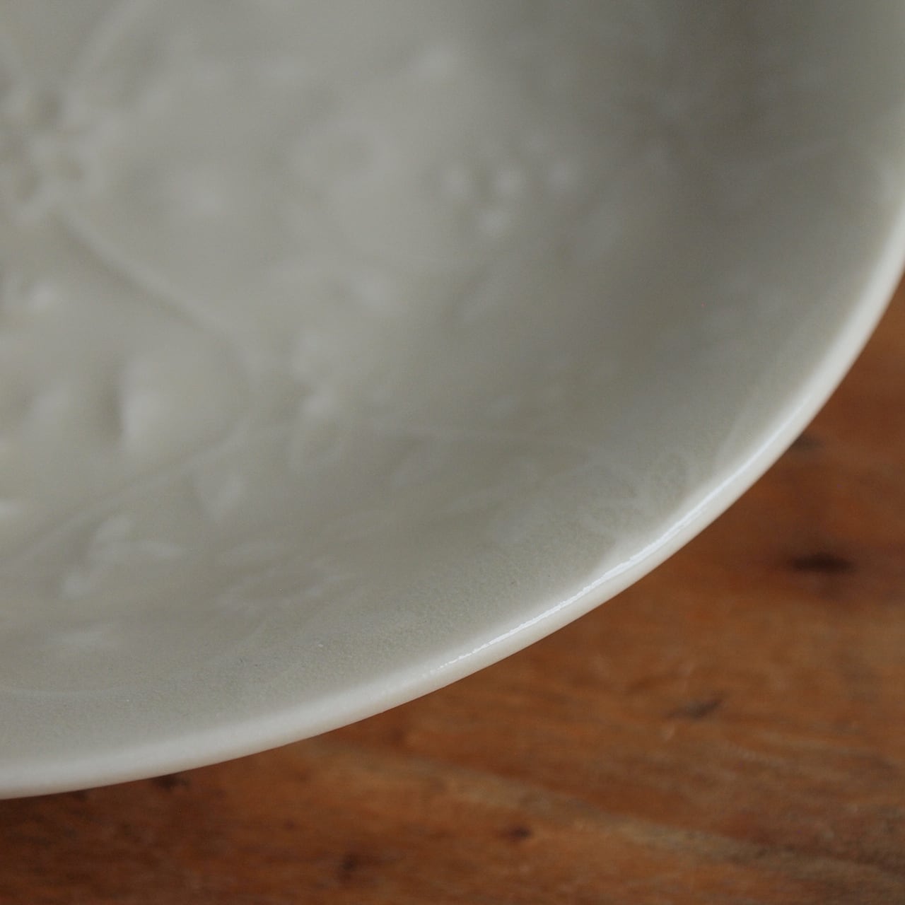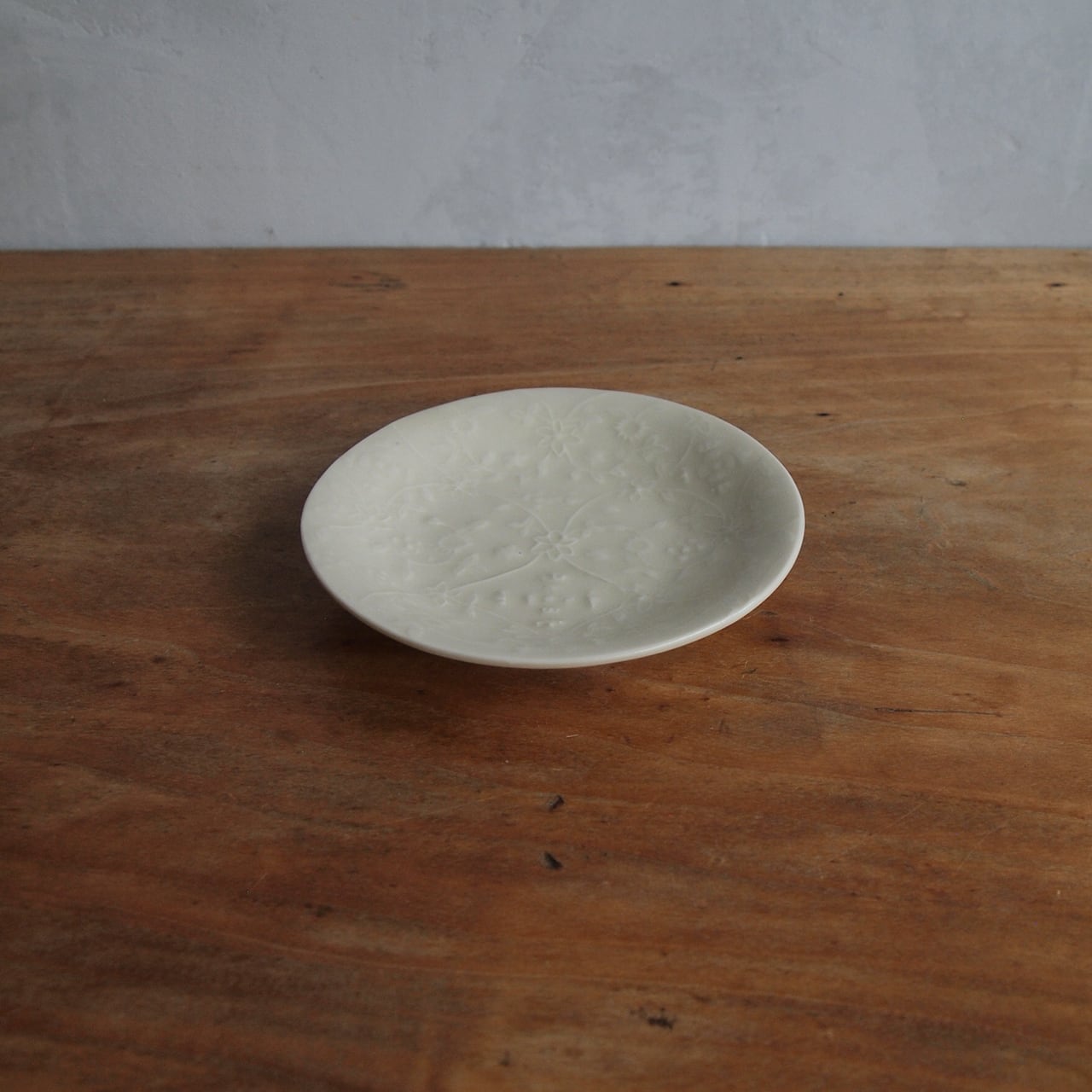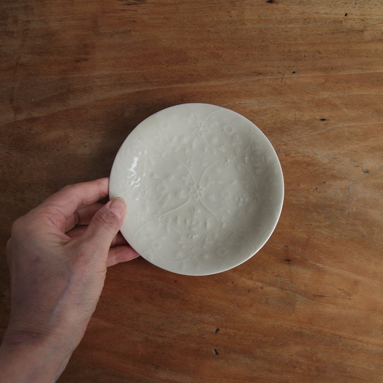 【online個展】稲村真耶|生成り印刻更紗唐草4寸皿