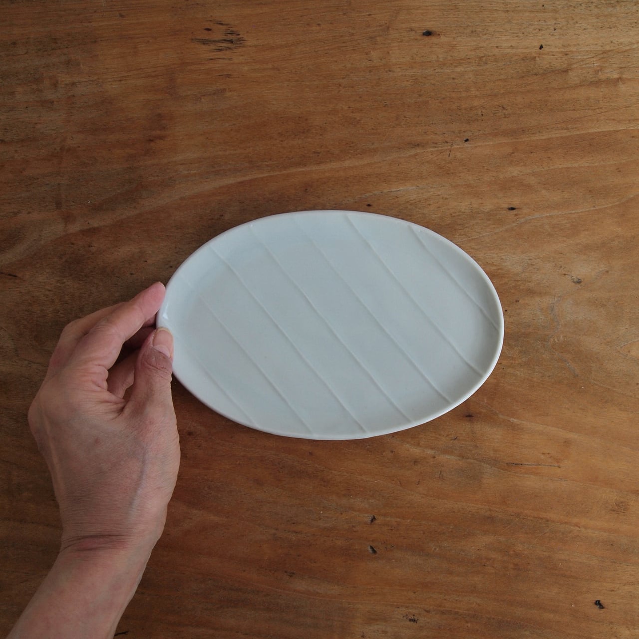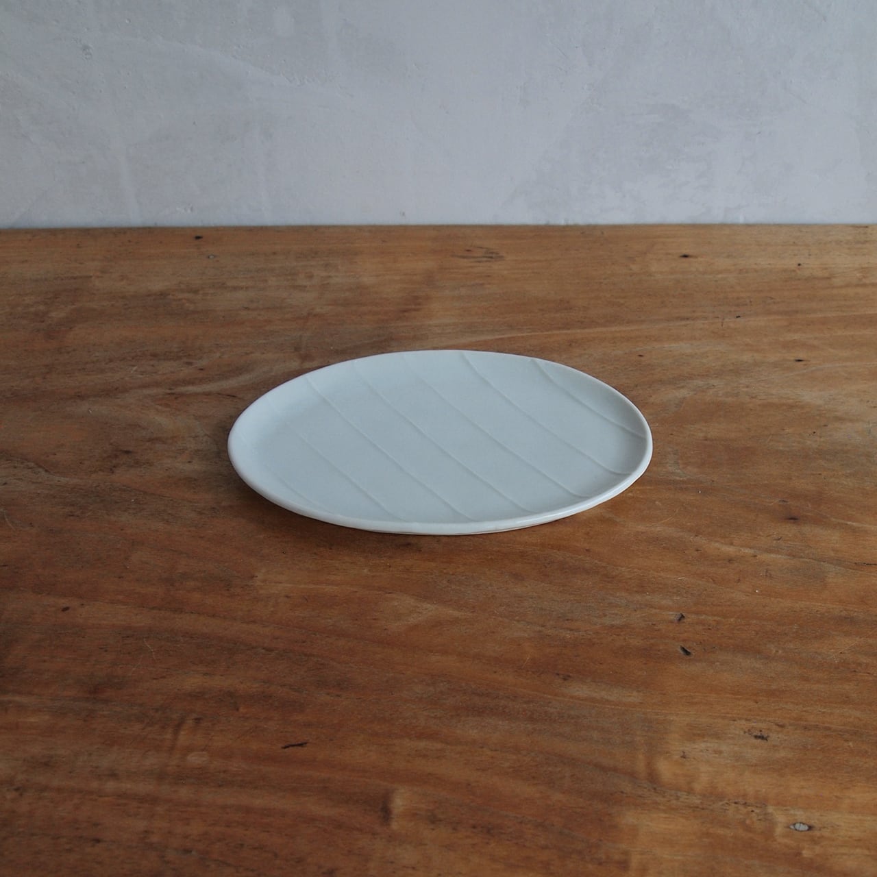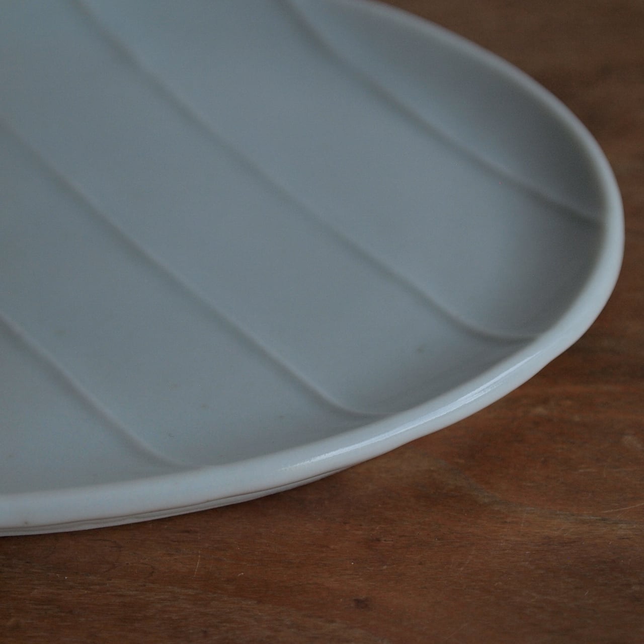 【online個展】稲村真耶|白磁陽刻縞文楕円皿 大