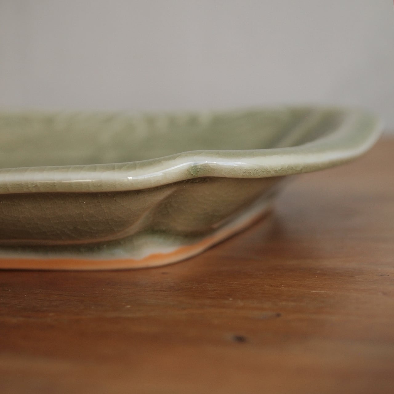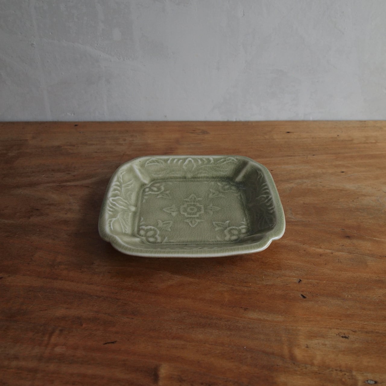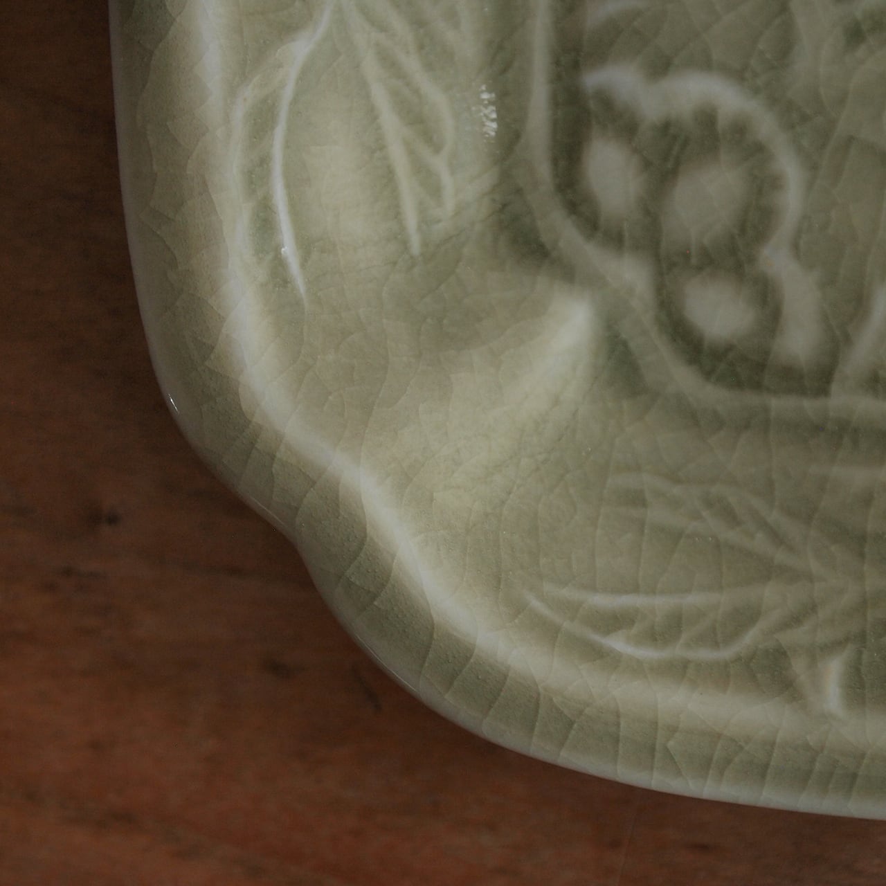 【online個展】稲村真耶|貫入青磁陽刻唐花隅切四方皿