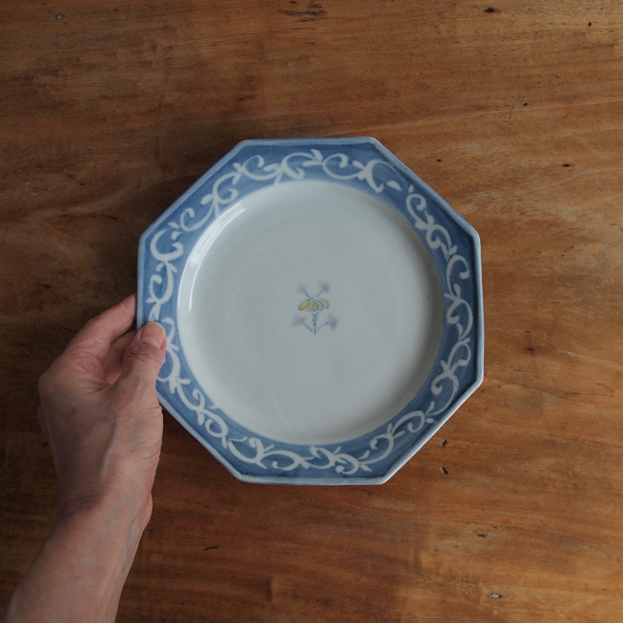 【online個展】稲村真耶|呉須染唐草八角6.5寸皿
