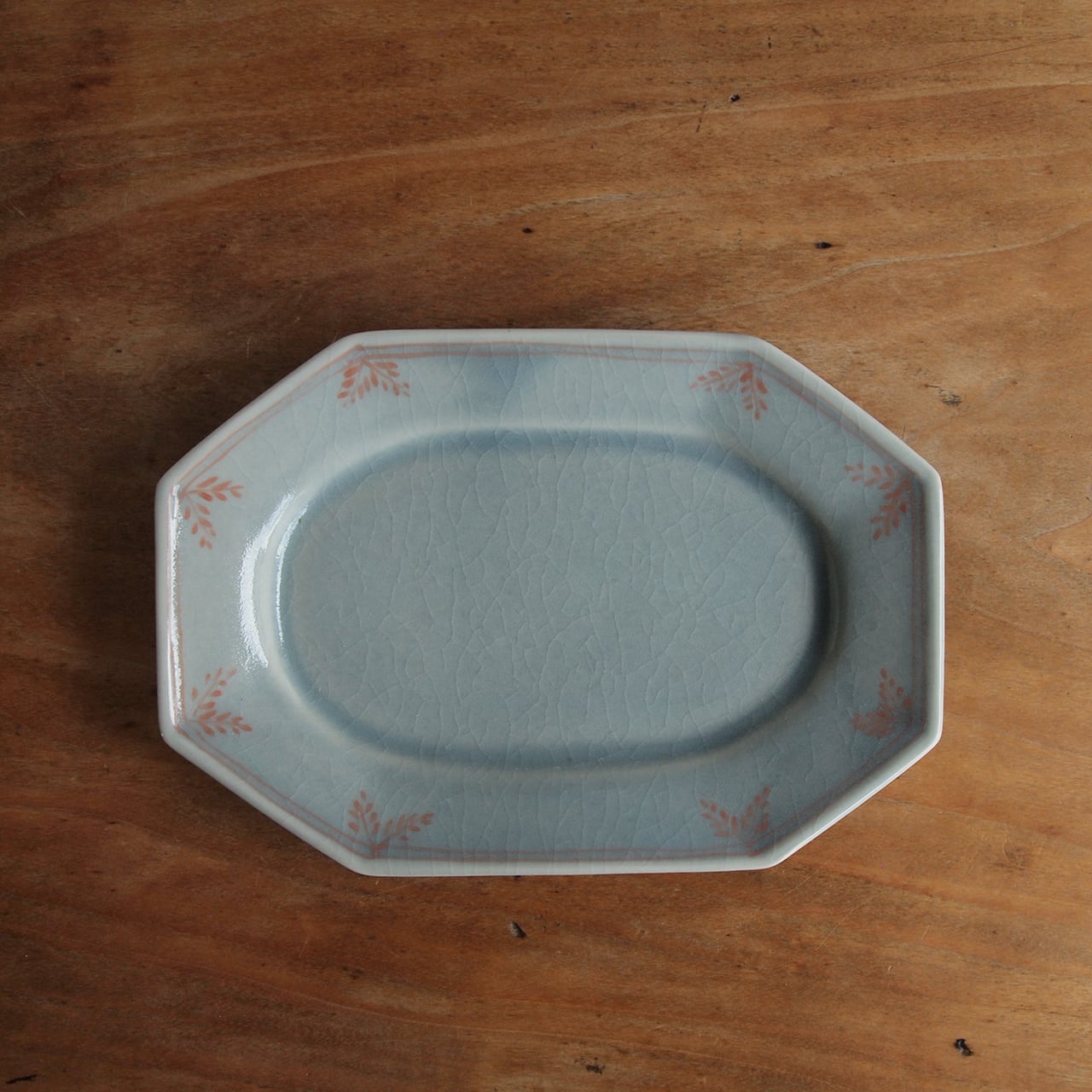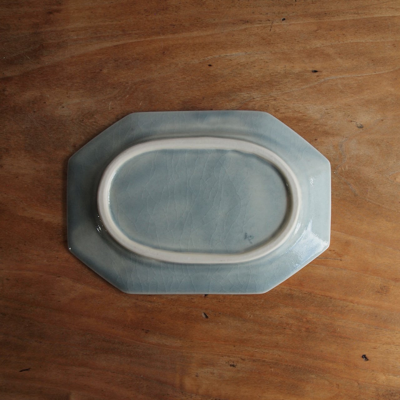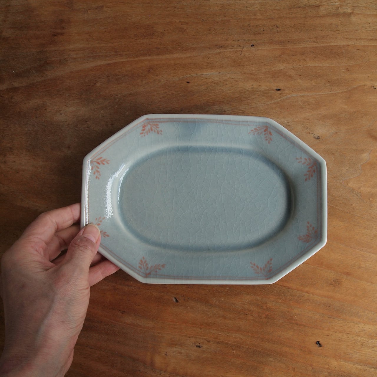 【online個展】稲村真耶|渋蒼釉赤絵6.5寸長八角皿