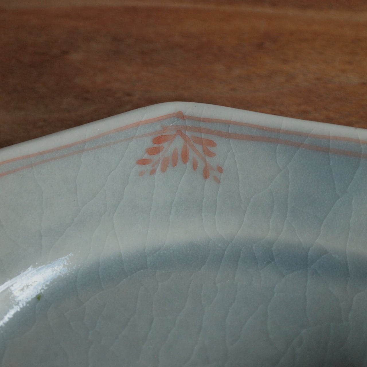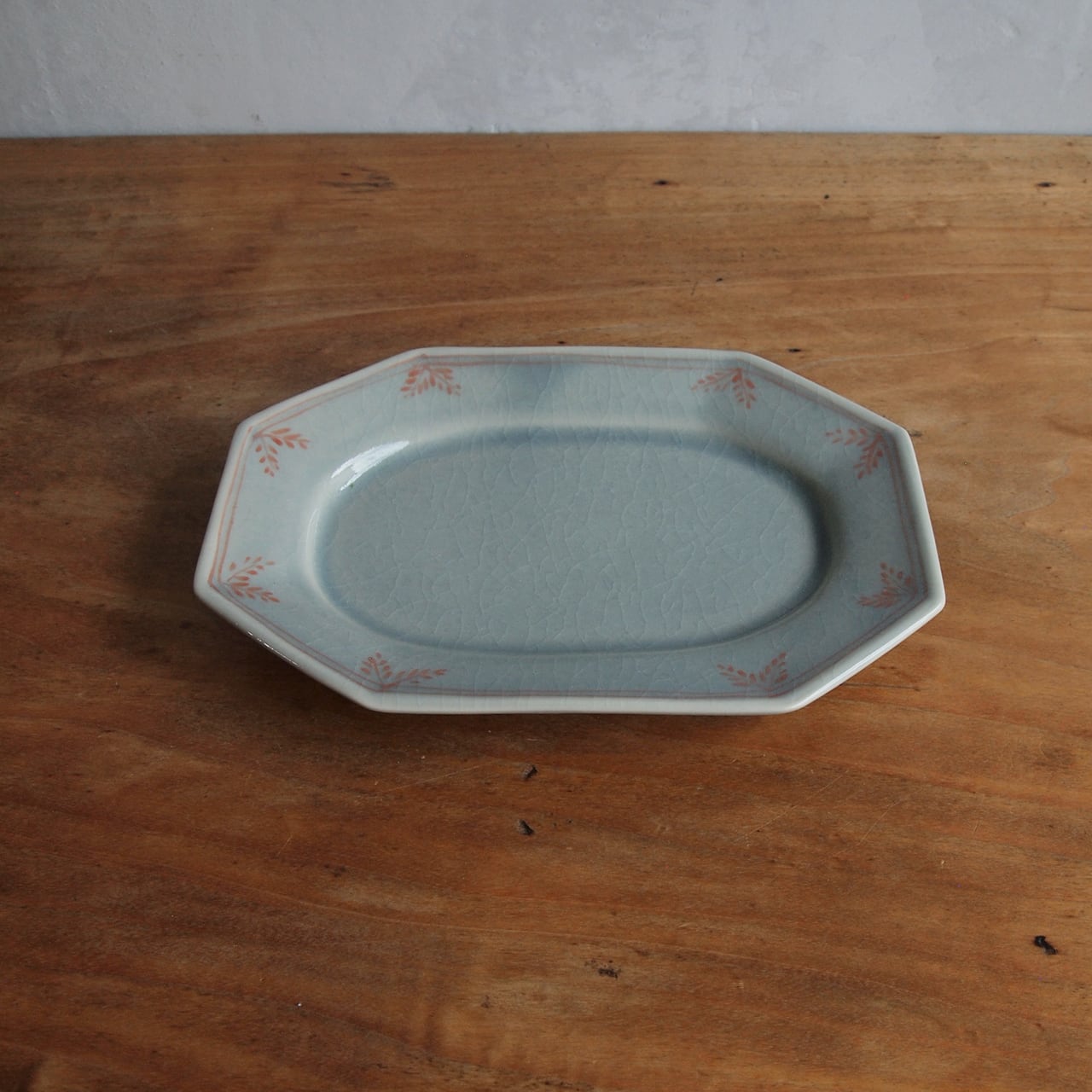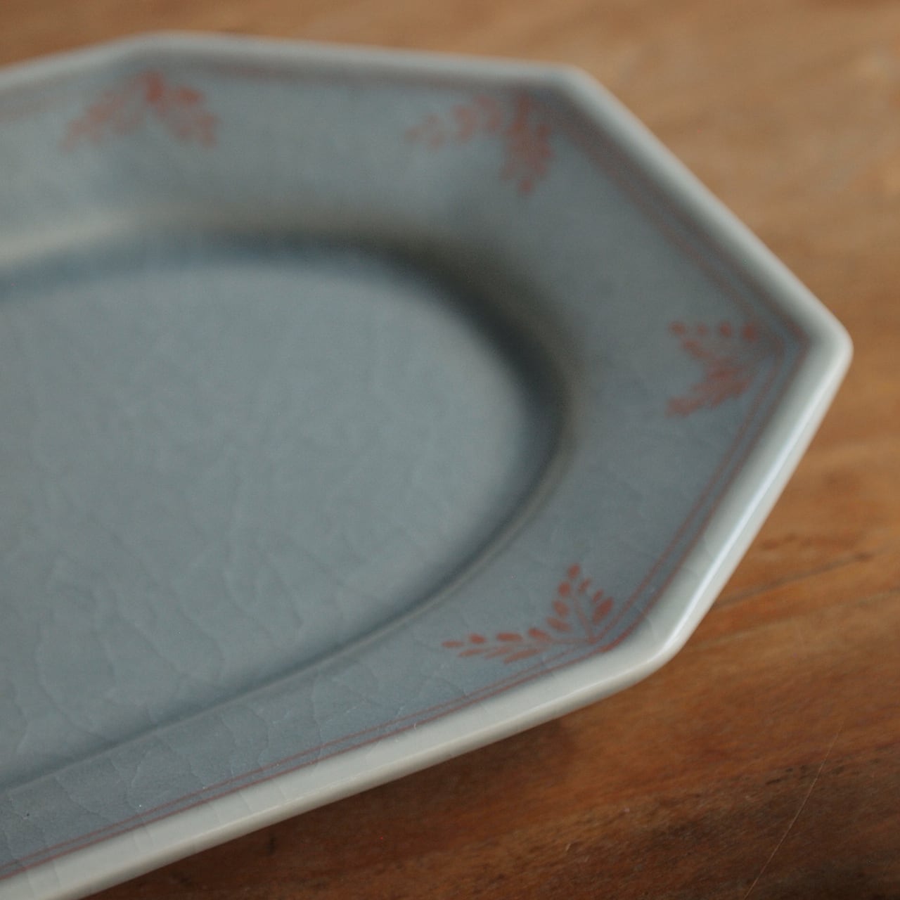 【online個展】稲村真耶|渋蒼釉赤絵6.5寸長八角皿