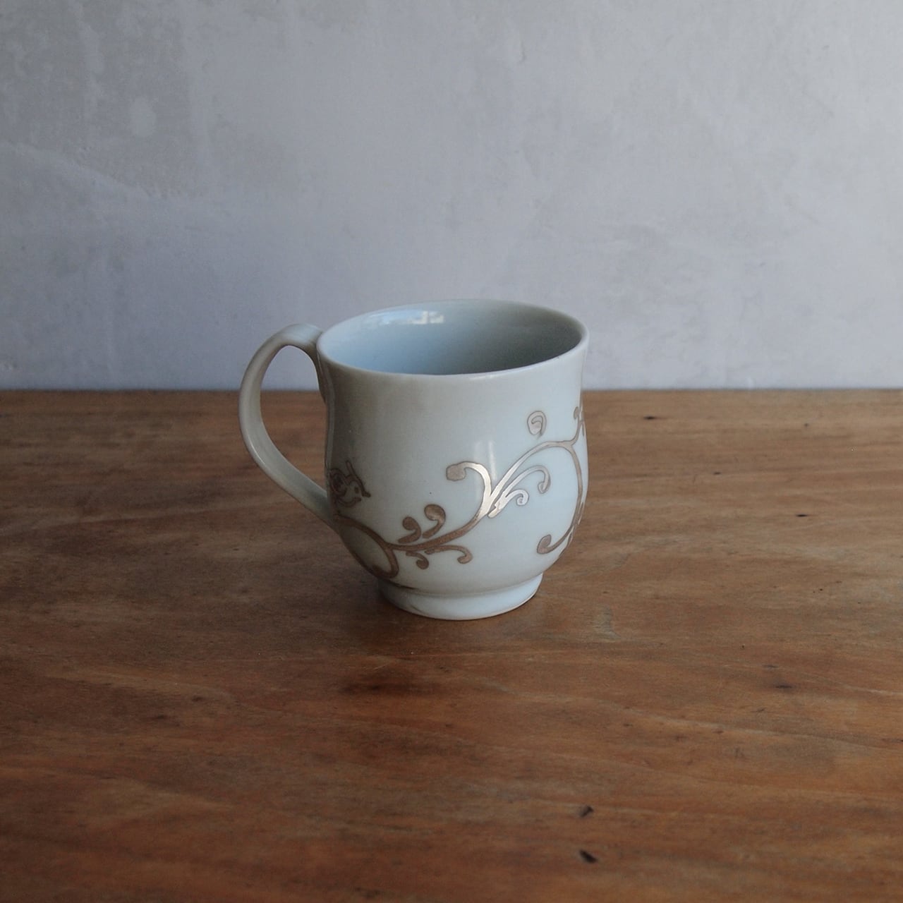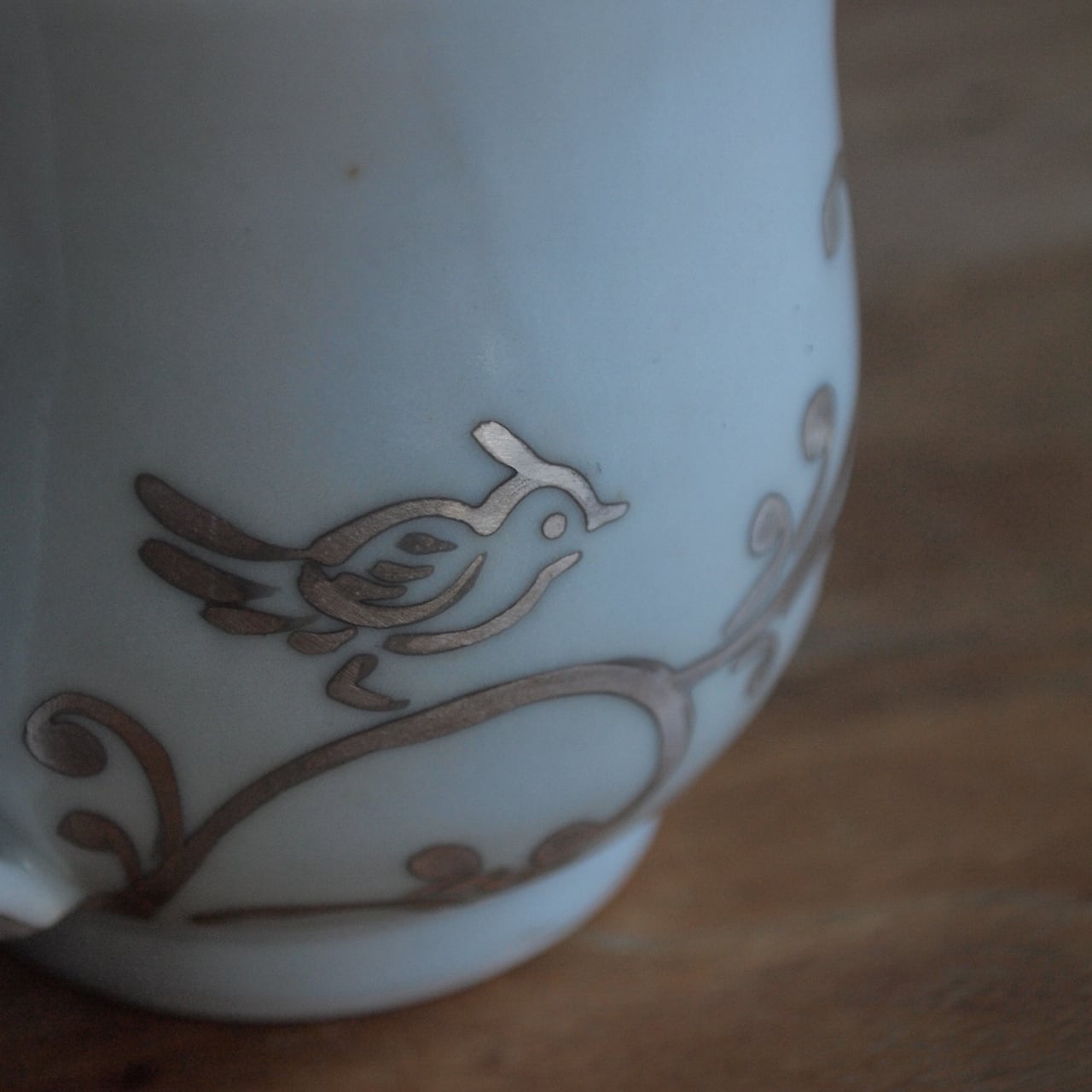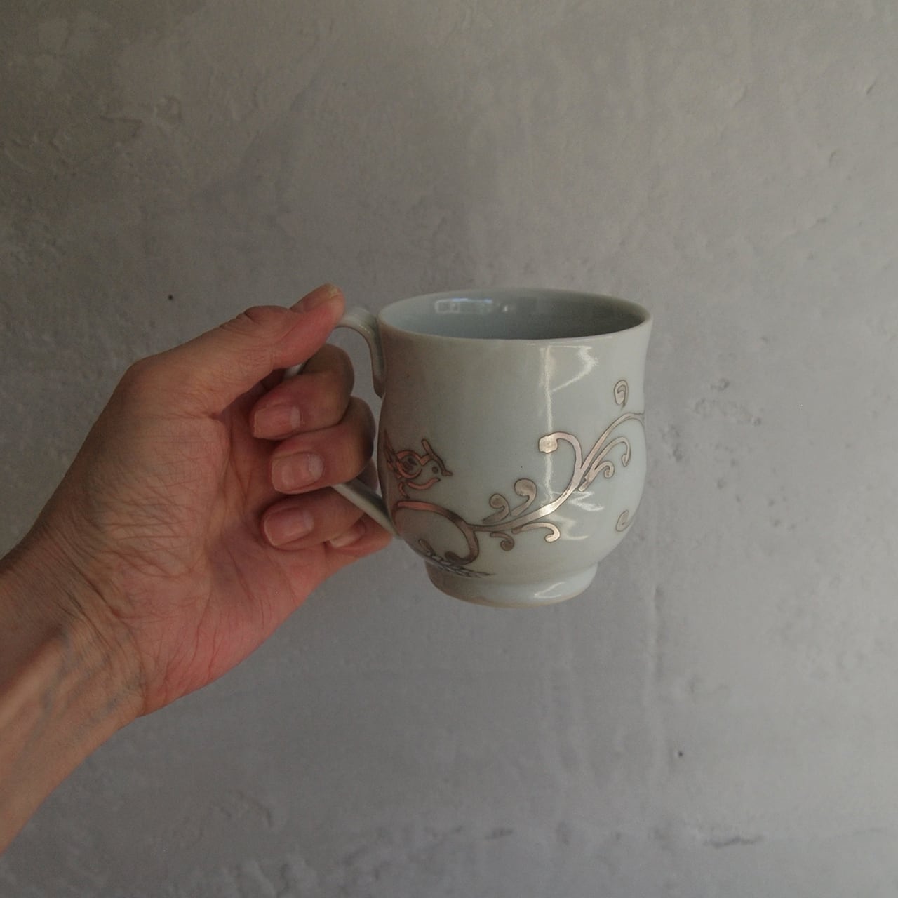 【online個展】稲村真耶|銀彩鳥唐草マグカップ[B]