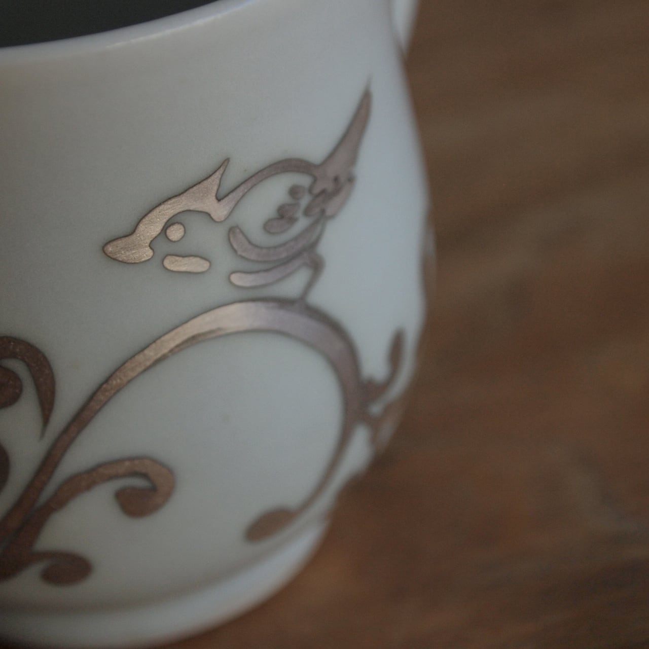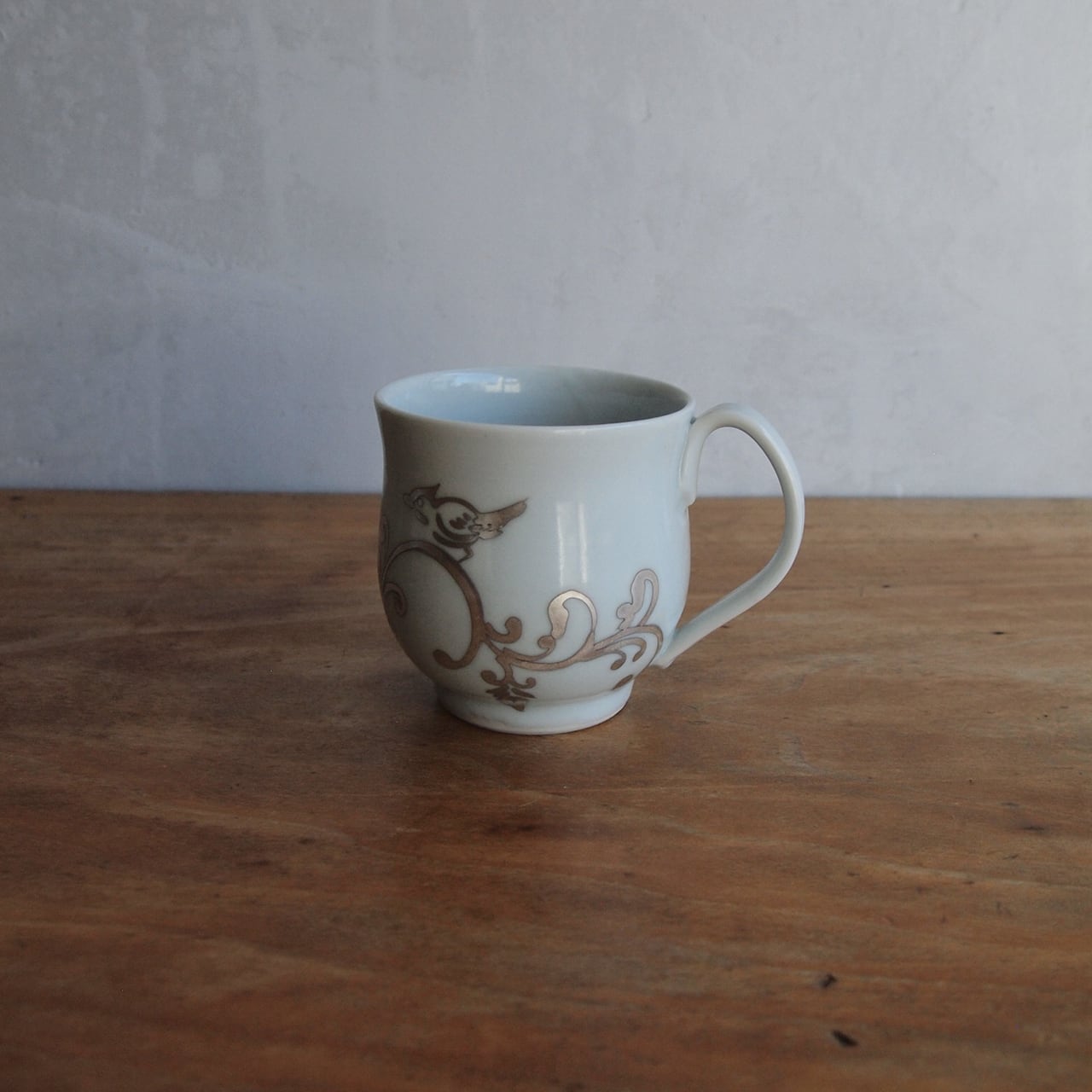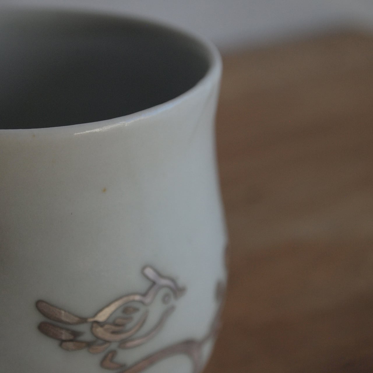 【online個展】稲村真耶|銀彩鳥唐草マグカップ[B]