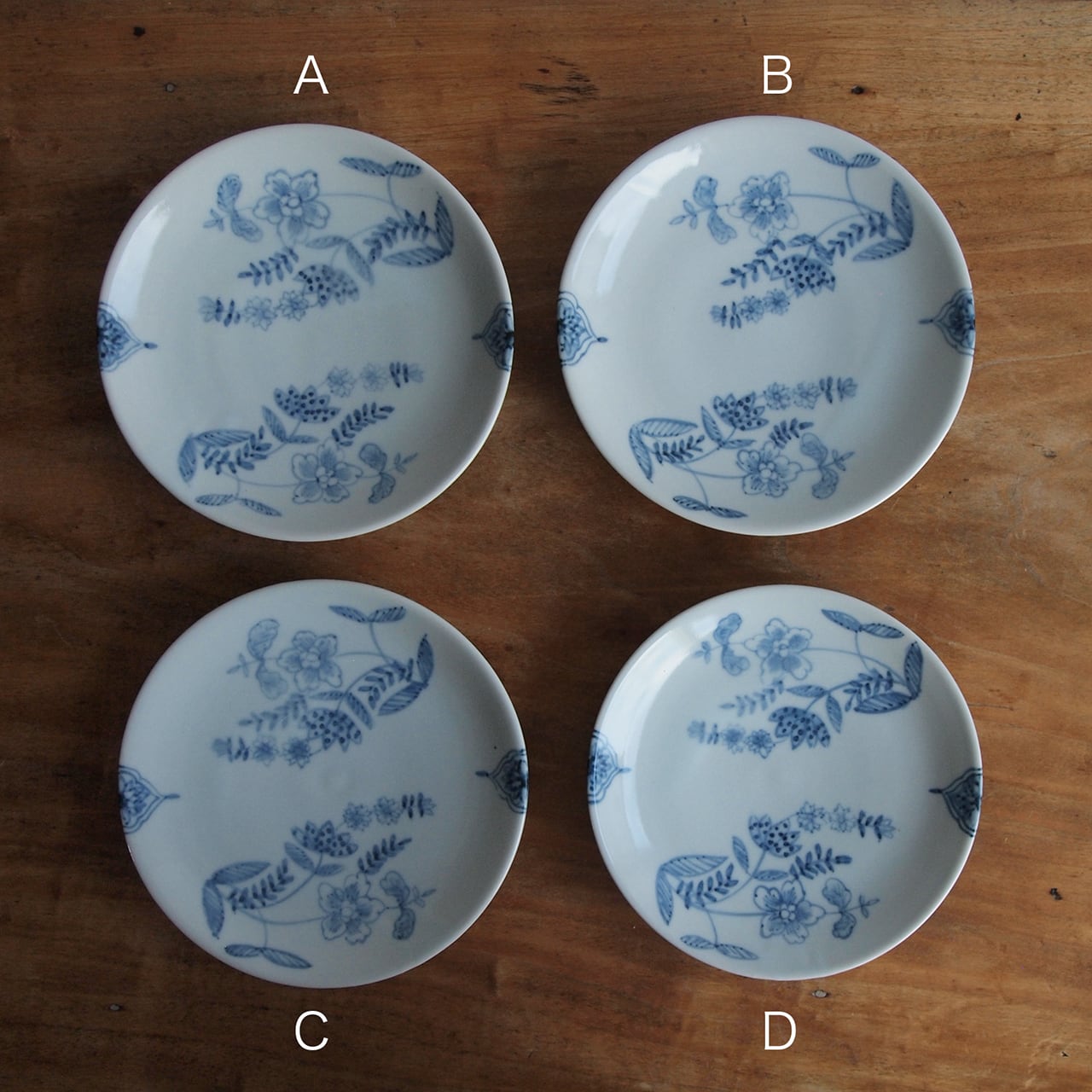 絵の雰囲気、釉薬のかかり方などに違いがあります。