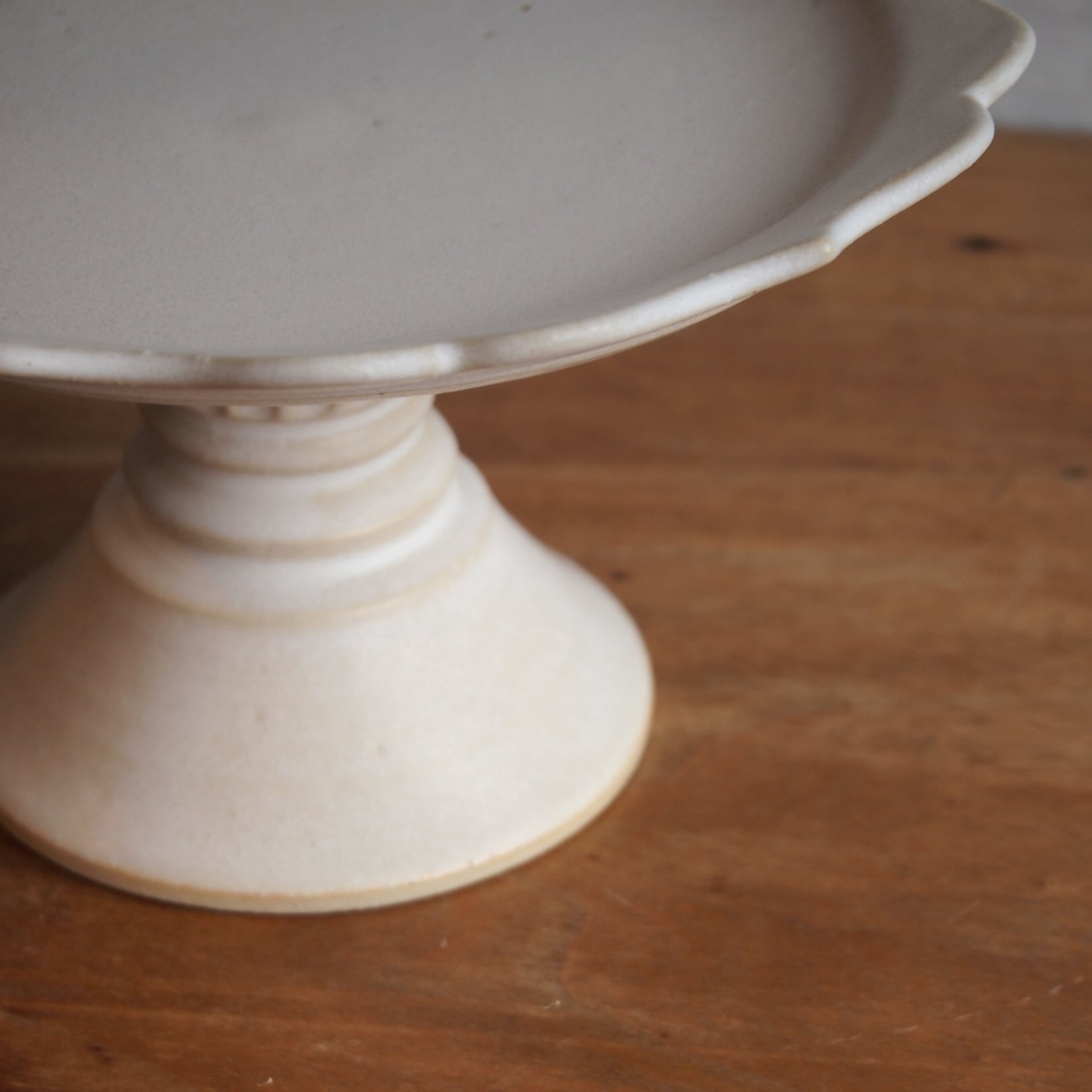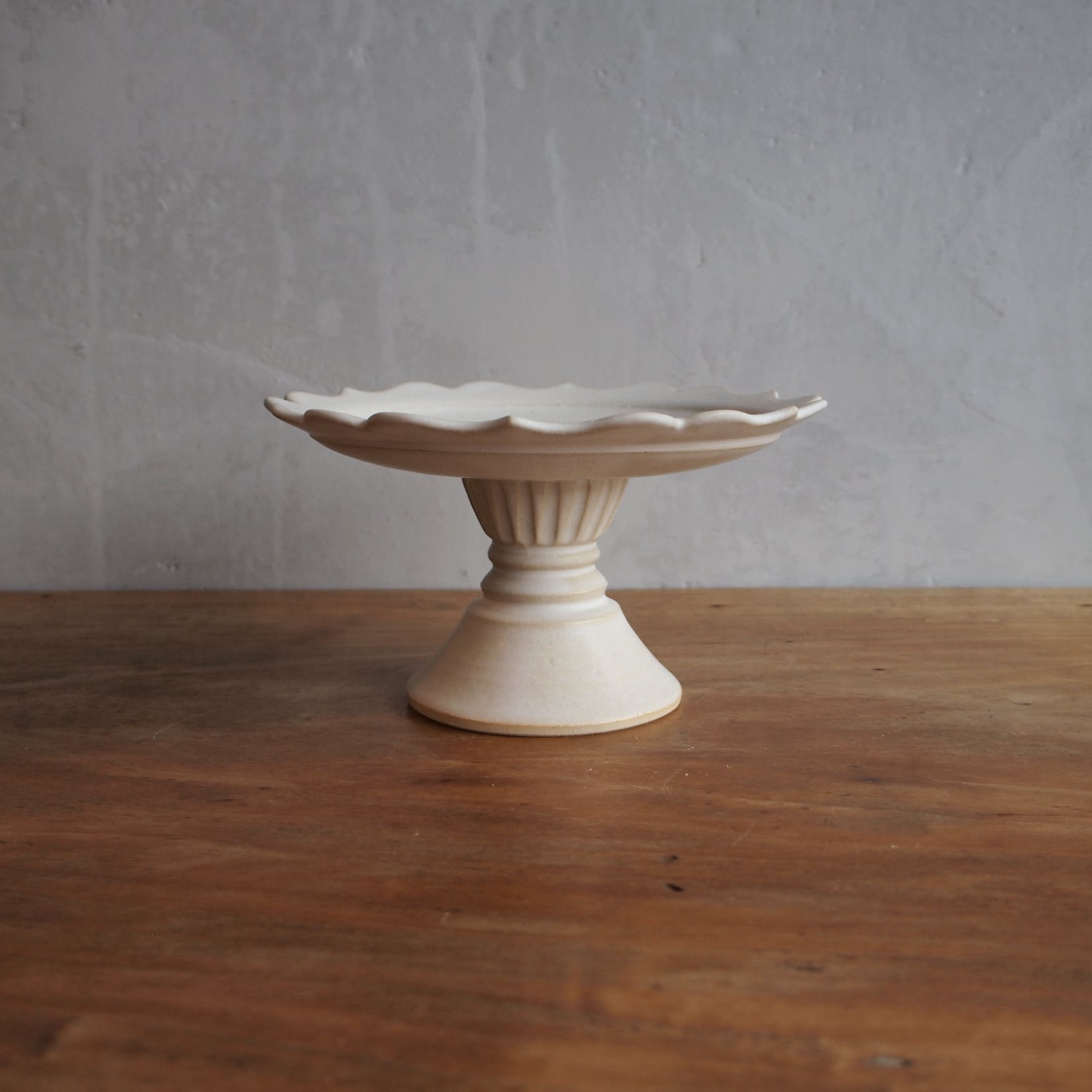 マットな白のケーキスタンド。